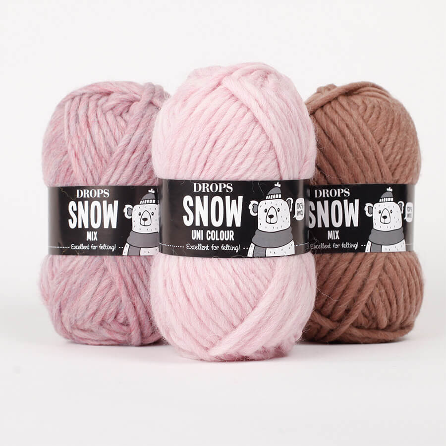 Drops Snow is a soft, thick and easy to use single stranded yarn spun from 100% pure wool, that results in warm and comfortable garments, and that is ideal for felting. The wool fibers used in this yarn are untreated, which means that it is only washed and not exposed to any chemical treatment prior to the dyeing. This highlights the fiber’s natural properties, while it also provides a better shape and texture quality.